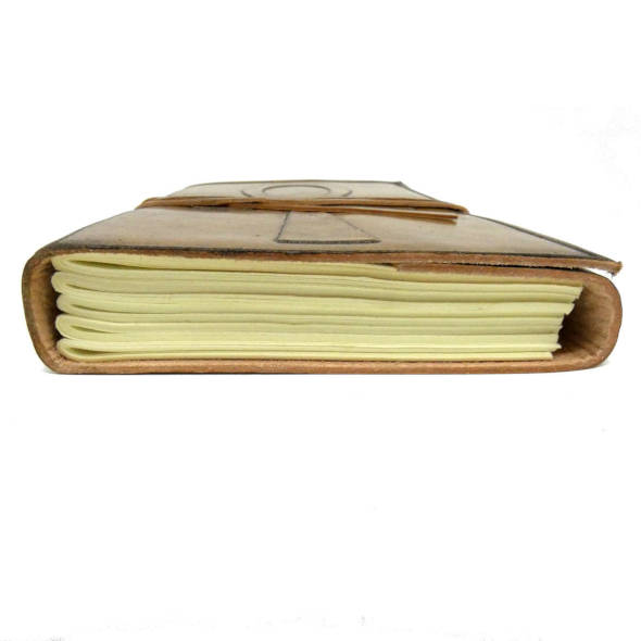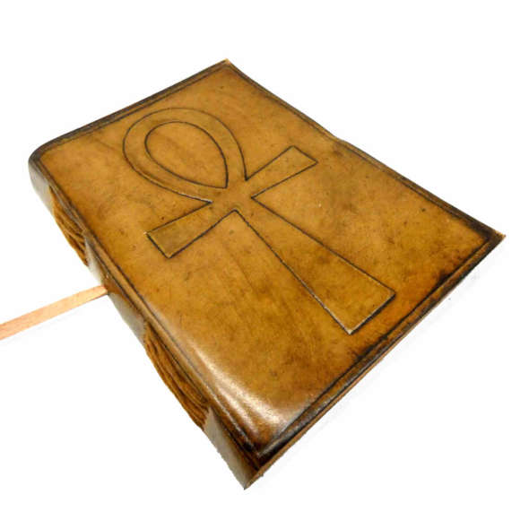 Agenda in Pelle “Ankh”, realizzata a mano in India. La copertina dell’agenda in pelle è realizzata al 100% in vera pelle naturale di capra, che le dona un incredibile odore naturale. Grazie al metodo di concia che non fa uso di prodotti chimici e alla tintura a mano, la pelle mantiene i suoi tratti originali e un affascinante effetto di stile vintage affascinante. L’agenda è formata da 120 fogli, 240 pagine contando entrambi i lati di ogni foglio. I fogli vengono cuciti manualmente con cotone privo di acidi e contaminanti. Qualsiasi penna può scrivere o disegnare su queste pagine. Le dimensioni dell’agenda sono di 17,5 x 12,5 x 4 cm.